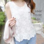 ブラウス ノースリーブ Uネック ラウンドネック レディース 女性 婦人服 トップス レース 花柄 かわいい おしゃれ 大きいサイズ