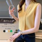 ブラウス レディース ノースリーブシャツ シフォン オフィス シャツ フォーマルブラウス シンプル vネック 仕事 着痩せ シャツブラウス おしゃれ
