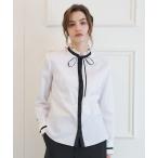 ブラウス シャツ バイカラーリボンタイフリルネックブラウス レディース