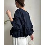 ブラウス シャツ 袖リブペプラムフリルブラウス レディース