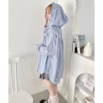ブラウス シャツ フリルフードストライプシャツ レディース