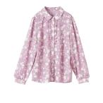 ブラウス シャツ ぼかしフラワーフリル ブラウス レディース