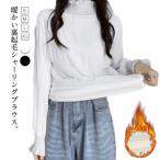 裏起毛 シャーリングトップス ハイネック ブラウス フリル 秋冬 レディース 長袖 インナー 厚手 裏起毛 パフスリーブ フリルネック レイヤード 重