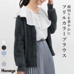 トップス ブラウス 長袖 フリルカラー リボン フェミニン ギャザー ストライプ 無 SALE Honeys ハニーズ フリルカラーブラウス