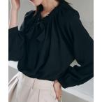 ブラウス シャツ フリル衿ボウタイギャザーブラウス レディース