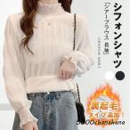 シアーブラウス 長袖 シフォンシャツ トップス インナー 裏起毛追加 シャツブラウス フレア袖 レディース プチハイネック フリル トップス