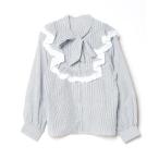 ブラウス シャツ ミモザ刺繍フリルブラウス ストライプ レディース