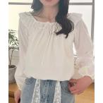 ブラウス シャツ レディース 長袖刺繍レースメロウフリルシアートップス レディース