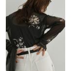 ブラウス シャツ フラワープリントシアー長袖トップス レディース