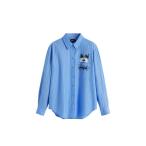 ブラウス シャツ ミッキーマウスプリント ブルーストライプ オーバーサイズシャツ レディース