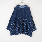 45R ドットプリントのシュシュスモックブラウス(インディゴ) フォーティファイブアール トップス シャツ・ブラウス【送料無料】