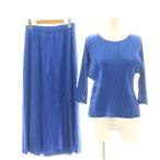 プリーツプリーズ PLEATS PLEASE FLICK ブラウス パンツ セットアップ プルオーバー イージー フレア 3 2 ブルー /CX ■OS ■SH レディース