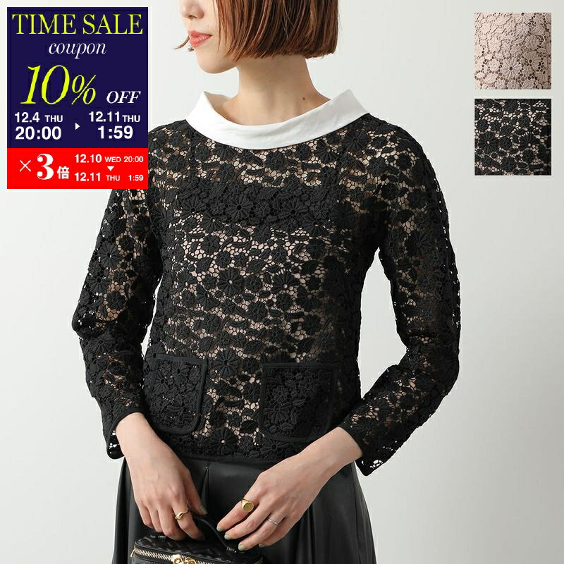 【10%OFFクーポン対象・12/11-1時59分迄】N°21 ヌメロヴェントゥーノ ブラウス G132 4812 レディース フラワー レース 刺繍 キャミソール付き 長袖 ラウンドネック 襟付き カラー2色【cp_ten】