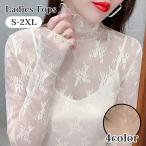 レディース レース ブラウス トップス シースルー レーストップス 長袖 ハイネック インナー トップス セクシー カットソー 大きいサイズ M L 2L 3L 送料無料