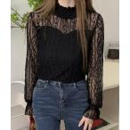 レディースシャツ レディーストップス ハイネック ブラウス レース カットソー インナー 長袖 透け感 肌透け 送料無料 メッシュ オシャレ セクシー
