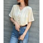 ブラウス シャツ ショルダータックVネック半袖ブラウス レディース