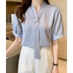 ブラウス シャツ ボウタイブラウス 半袖 レディース 無地 レディース