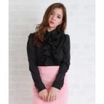 ブラウス シャツ 長袖立ち襟フリル無地ブラウス シャツ レディース