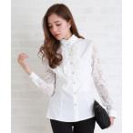 ブラウス シャツ 袖レースデザイン立ち襟フリルブラウス シャツ レディース