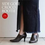 サイドゴア クロコブーティ クロコ型押し ブラウニーグレイ ブラウン グレイ 7cm 日本製 本革 21.5cm-25.5cm