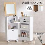大容量コスメワゴン ミラー角度調節可能 キャスター付き ほぼ完成品 (ミラー ドレッサー 鏡 コスメ収納 ドライヤー収納 シンプル かわいい おしゃれ コンパクト 省スペース 白 ナチュラル ブラウン 北欧 サイドテーブル)
