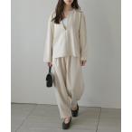 セットアップ 日本製 Vネックトップス+ワイドパンツ セットアップ レディース