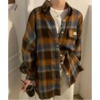 ブラウス シャツ カラーブロックチェックルーズシャツ レディース