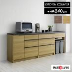 爆買 食器棚 ロータイプ レンジ台 キッチンカウンター 国産 日本製 240cm 大容量 ゴミ箱収納付き ナチュラル ブラウン 木目柄