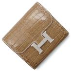 (未使用 展示品)HERMES エルメス コンスタンス コンパクト アリゲーター クロコダイル ブラウン A刻印 二つ折り財布 エキゾチックレザー シルバー金具