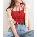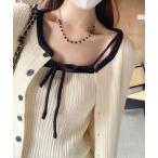 カーディガン 配色パイピングが目を惹くリボンキャミ×カーディガンセット レディース