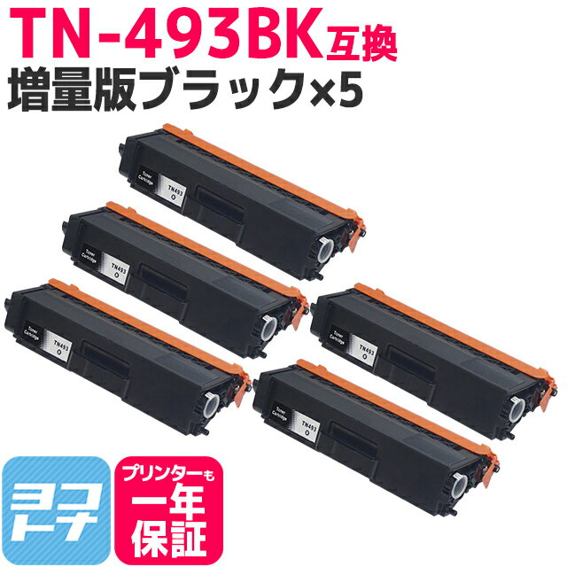 ★月末10%OFFクーポン★【TN-491の大容量】 TN-493 ブラザー用 brother用 ブラック×5セット互換トナーカートリッジ 内容:TN-493BK 対応機種:HL-L8360CDW / HL-L9310CDW / MFC-L8610CDW / MFC-L9570CDW 宅配便で送料無料【互換トナー】