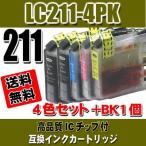 互換品 プリンターインク ブラザー LC211-4PK 4色セット+BK1個 インクカートリッジ