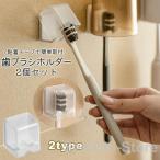 歯ブラシホルダー 2個セット 歯ブラシ立て カバー付き 壁掛け 吊り下げ コンパクト 粘着テープ 貼り付け 取付け簡単 工具不要 衛生的 清潔 洗面所