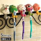 歯ブラシホルダー 2個セット 歯ブラシ立て 壁掛け 吸盤 吊り下げ 引っ掛け 浮かせて収納 かわいい 洗面所 お風呂場 アニマル 動物 整理整頓 スッ