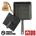 プレスグリルパン ブラシセット(グリルパン+プレス+ブラシ) IH対応 (鋳物 鋳鉄 一体成型 オーブン可 焼き目付け)
