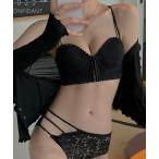 ブラジャー ショーツセット 編み上げレースのキュートデザインすっきりラインの谷間メイクブラ ブラジャーショーツセット
