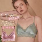 ブラレット シルク100%裏打ち シルクサテン レースコンビ ブラジャー 取り外しパッド ノンワイヤー 花柄 スカラップ 三角ブラ レディース ウォーターグリーン/スモーキーローズ S/M/L/XL 送料無料 ctbra kinu15