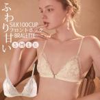 フロントホック ブラレット シルク100%カップ 配色レース 三角ブラ エンブロイダリーレース ブラジャー はちみつ色 ノンワイヤー アイボリー S/M/L/XL ctbra kinu15