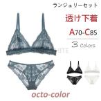 ブラジャー ショーツ セット ノンワイヤー ブラレット 総レース バックレース シースルーランジェリーセット 透け下着 パッドなし 透け感 花柄 三角ブラ