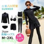 体型カバー 水着 レディース ラッシュガード ブラック パッド 5点セット レギンス UV対策 長袖ラッシュパーカー ショートパンツ