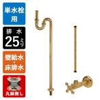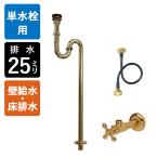 単水栓用 給水金具・排水部材Aセット(壁給水・床排水25ミリ規格・ブラス) Sトラップ アングル止水栓 給水ホース