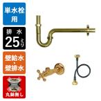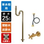 単水栓用 給水金具・排水部材Bセット(壁給水・壁排水25ミリ規格丸鉢なし・ブラス) Pトラップ アングル止水栓 給水ホース