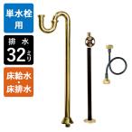 単水栓用 給水金具・排水部材Cセ ット(床給水・床排水32ミリ規格 ・ブラス) Sトラップ ストレー ト止水栓 給水ホース