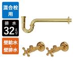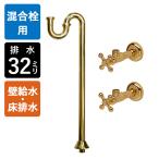 給水ホース付混合栓用 給水金具・排水部材Eセット(壁給水・床排水32ミリ規格・ブラス) Sトラップ アングル止水栓