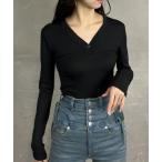 tシャツ ヘンリーVネック ボディースーツ風 リブトップス レディース