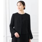 ジャケット ノーカラージャケット 「喪服・礼服」タックフレアスリーブノーカラーブラックフォーマルジャケット レディース