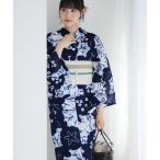 浴衣 有松絞り浴衣3点セット utatane 綿麻 白と紺の花シルエット レディース