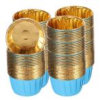 uxcell 焼きカップケーキ用のミニメタリック箔カップケーキライナー 150個のカップケーキマフィンライナー カップケーキホルダー ブルー/金色