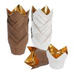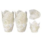 uxcell 200個のチューリップ型ベーキングカップ カップケーキマフィンライナー 紙製グリースプルーフラ ッパー 誕生日パーティー ホワイト/金色