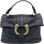 ブルガリ BVLGARI セルペンティ スカリエ ハンドバッグ ヒョウ柄 ハンドバッグ レザー ブラック レディース 中古